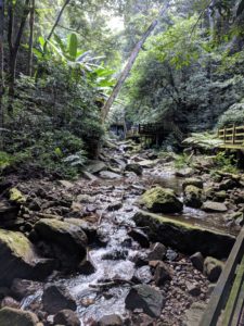 One of the biggest activities here of course is hiking (Chinese only though, remember? :D). There are two famous trails here. One is 2 hours long and the other is 10 hours long. I was totally excited for the 10 hours trail. The five finger mountain is named after its 5 important peaks. The 10 hours trail lead to one of them. But when I arrived at the trail head, the people dressed in an army uniform told me that “you are not supposed to hike the 10 hours trail this month, as the workers are building the stairs. The trail is closed” “%$#S&” The 2 hour trail lead you to a water fall. It is an origin of the second biggest river on the island.  Alright, that’s an okay placebo for me. I always want to see the origin of a big river (e.g., the origin of the Colorado river since I visited the grand canyon). The trail has many small waterfalls and ponds. Tadpoles live here happily. I did not see many big-leave tropical plants but some plantains/bananas.
